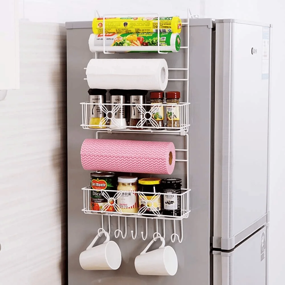 اجعل مطبخك أكثر تنظيمًا وأناقة مع المنظم المغناطيسي متعدد الوظائف! يُثبّت بسهولة على سطح الثلاجة أو أي سطح معدني بفضل المغناطيس القوي، مما يوفر لك مساحة تخزين إضافية للتوابل، القنينات، الزيوت، العلب، وحتى ورق المطبخ.
